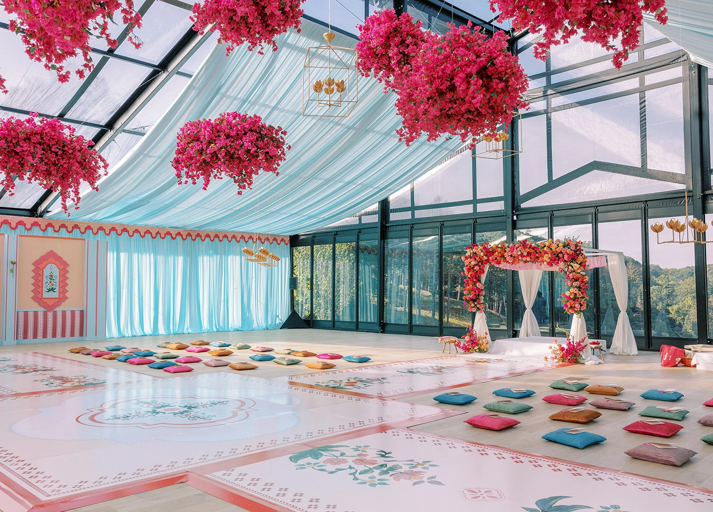 The couple envisioned a celebration that honored both their backgrounds while embracing the unique setting of the Alleghenies. Rooted in tradition yet inspired by the landscape, their wedding design sought to be colorful and sophisticated - an elegant expression of joy.