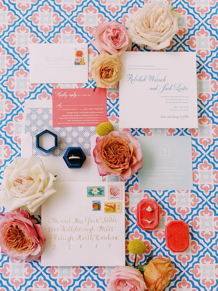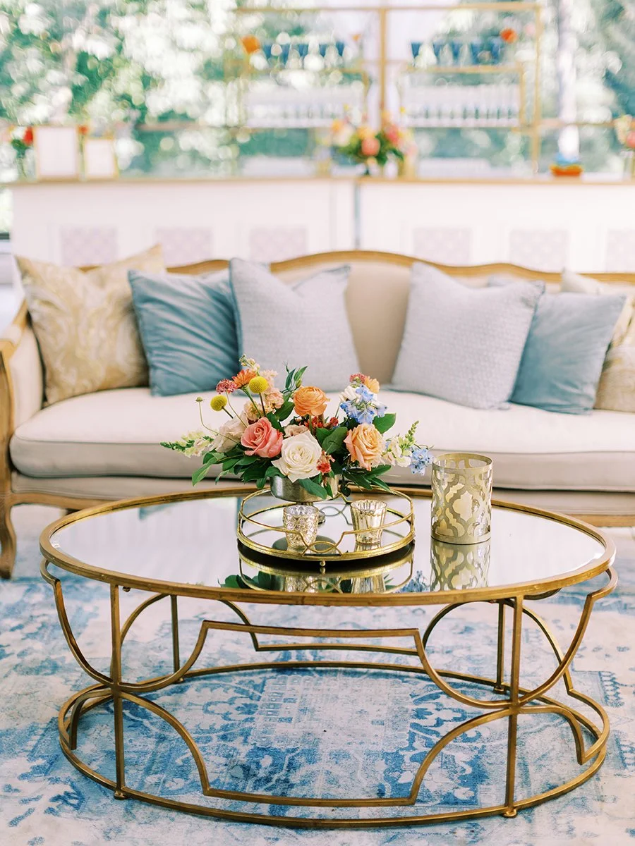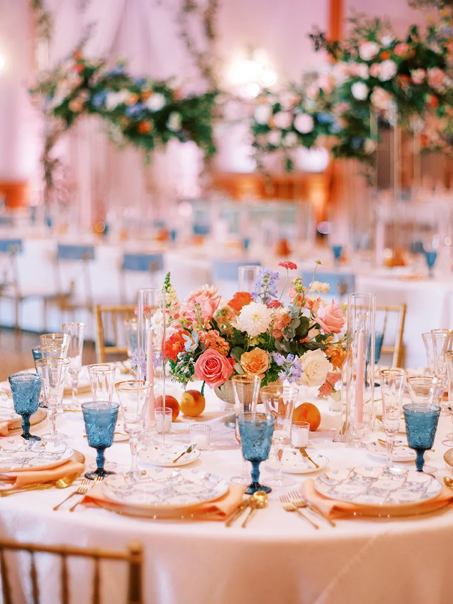 We combined pattern play with lush florals and colorful specialty seating to produce an event that leaned into the bold colors of the season and provided a well-rounded guest experience, full of thoughtful details at every turn.