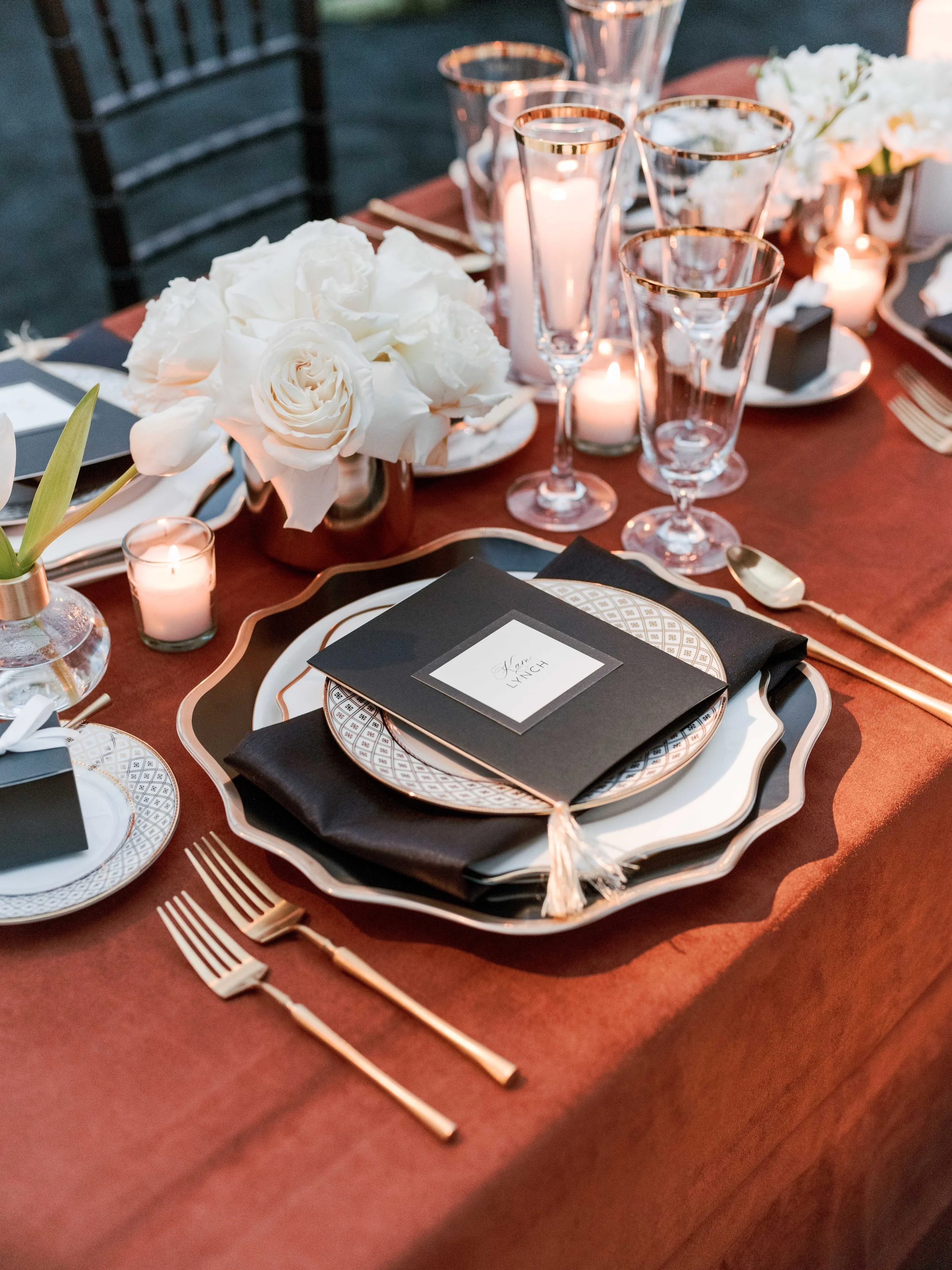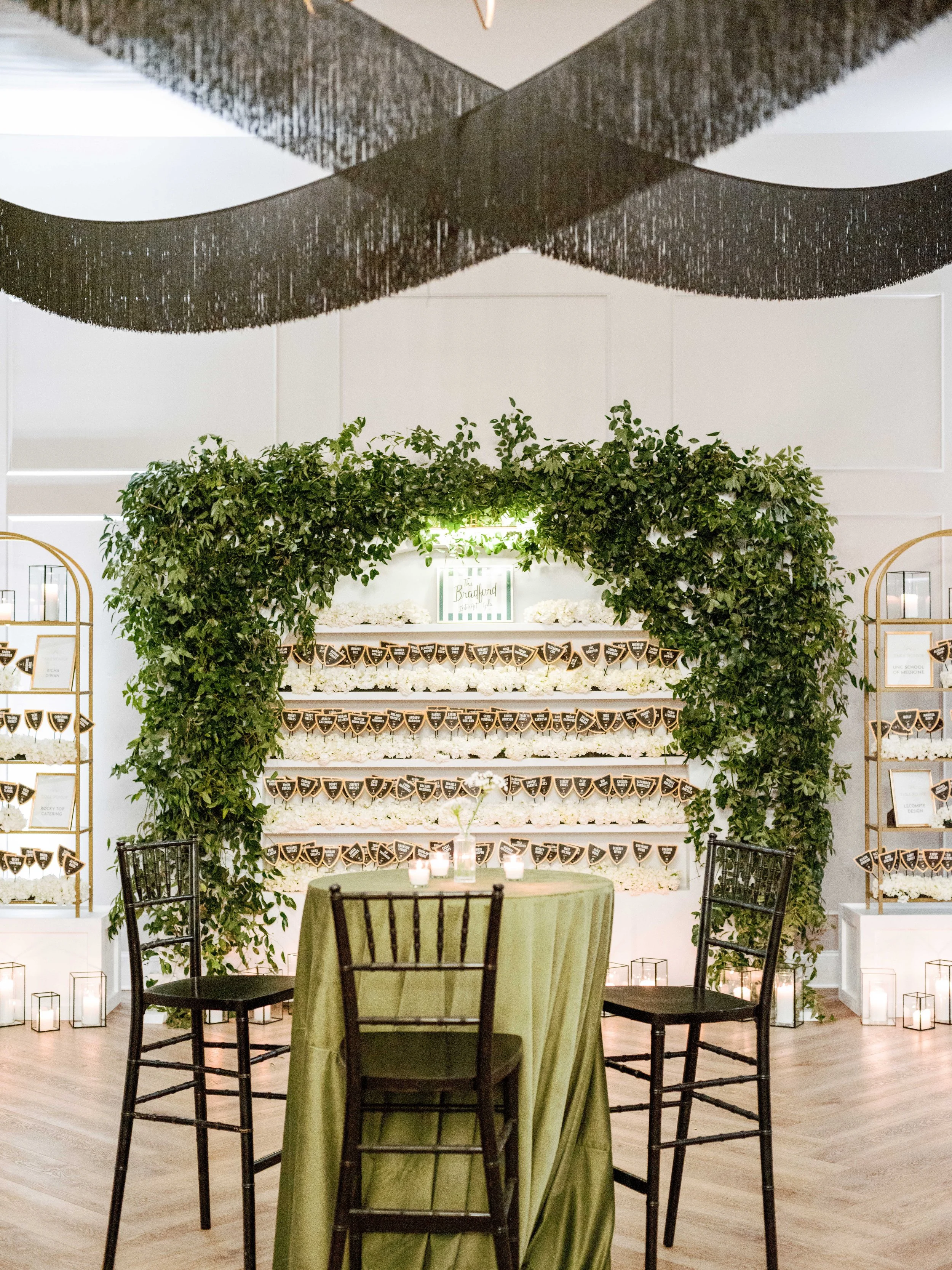We were honored and delighted to be asked by The Bradford, a wedding venue in New Hill, North Carolina, to partner with them on their first annual charity gala for InterAct of Wake County. InterAct is an incredibly valuable and necessary resource within our community, as the organization supports victims of domestic violence and sexual assault. The Bradford invited us to plan and design the event and gave us creative control to run with a theme of our choice.