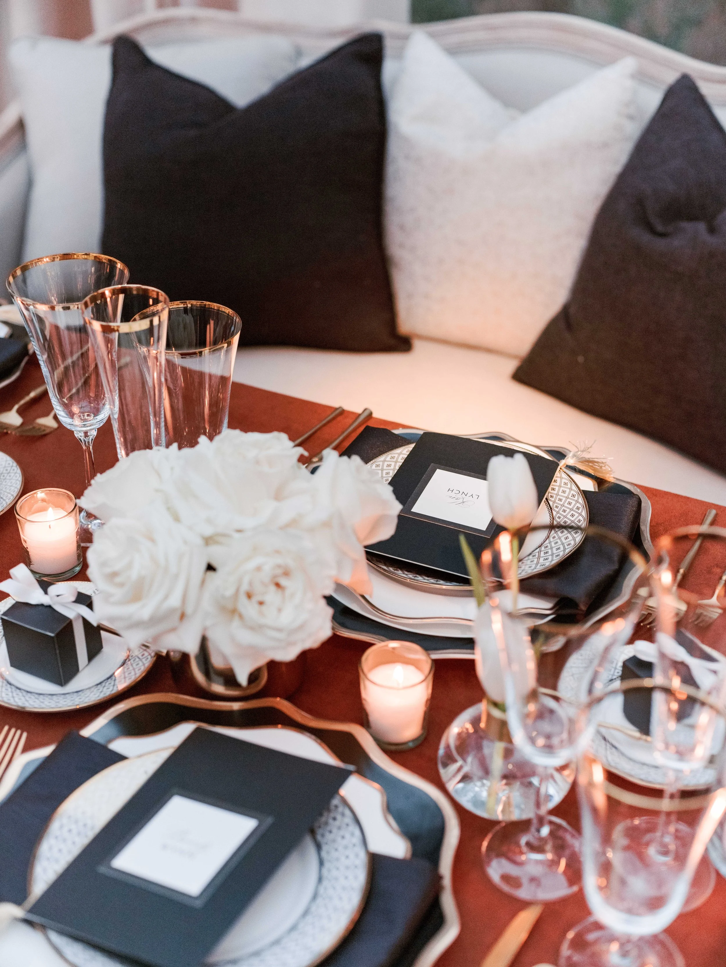 Since the date fell the weekend before Valentine’s Day, we were aiming for a design that portrayed a romantic and cozy, yet sophisticated aesthetic, and something that could be promoted as a date night activity for local couples. We landed on “An Evening in the Hills” - a tasteful Beverly Hills inspired party, without the gimmicks. We drew inspiration from Hollywood regency parties and interiors, as well as the Beverly Hills Hotel.