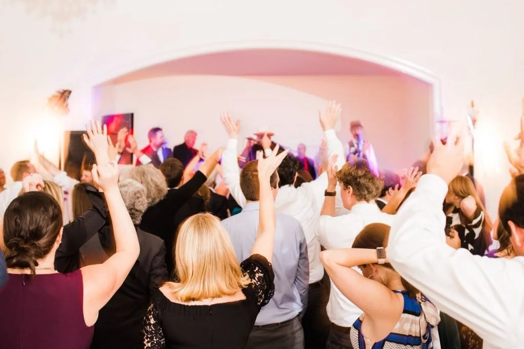 The celebration continued after the ceremony with delicious southern comfort bites like Chicken and Waffles, Bourbon Meatballs, and even a Steamed Oyster Bar from Donovan's Dish! Rubberband Band filled the space with non-stop dancing music that had everyone on the floor. You always know it's a great party when the bride and groom end up on stage!