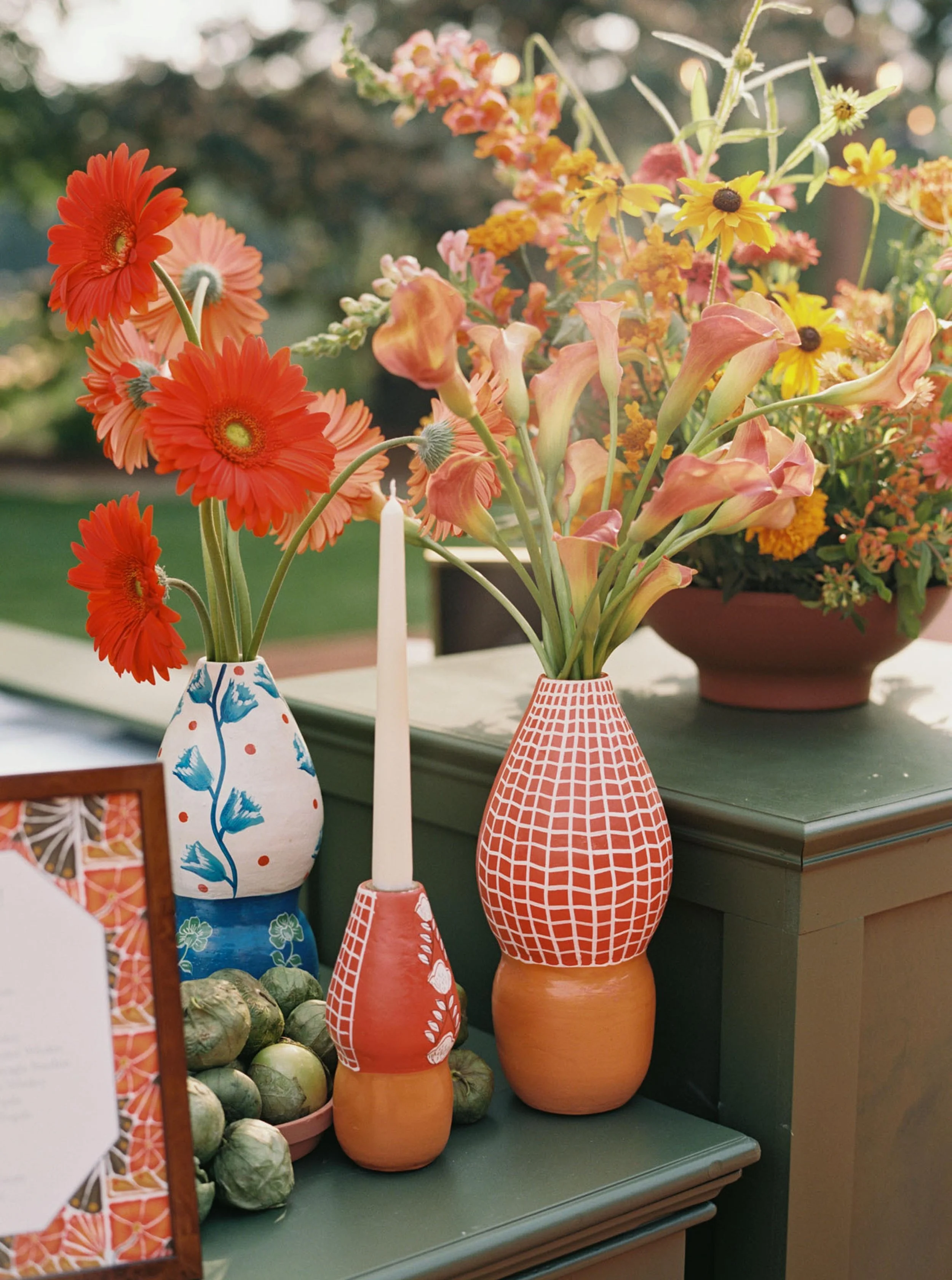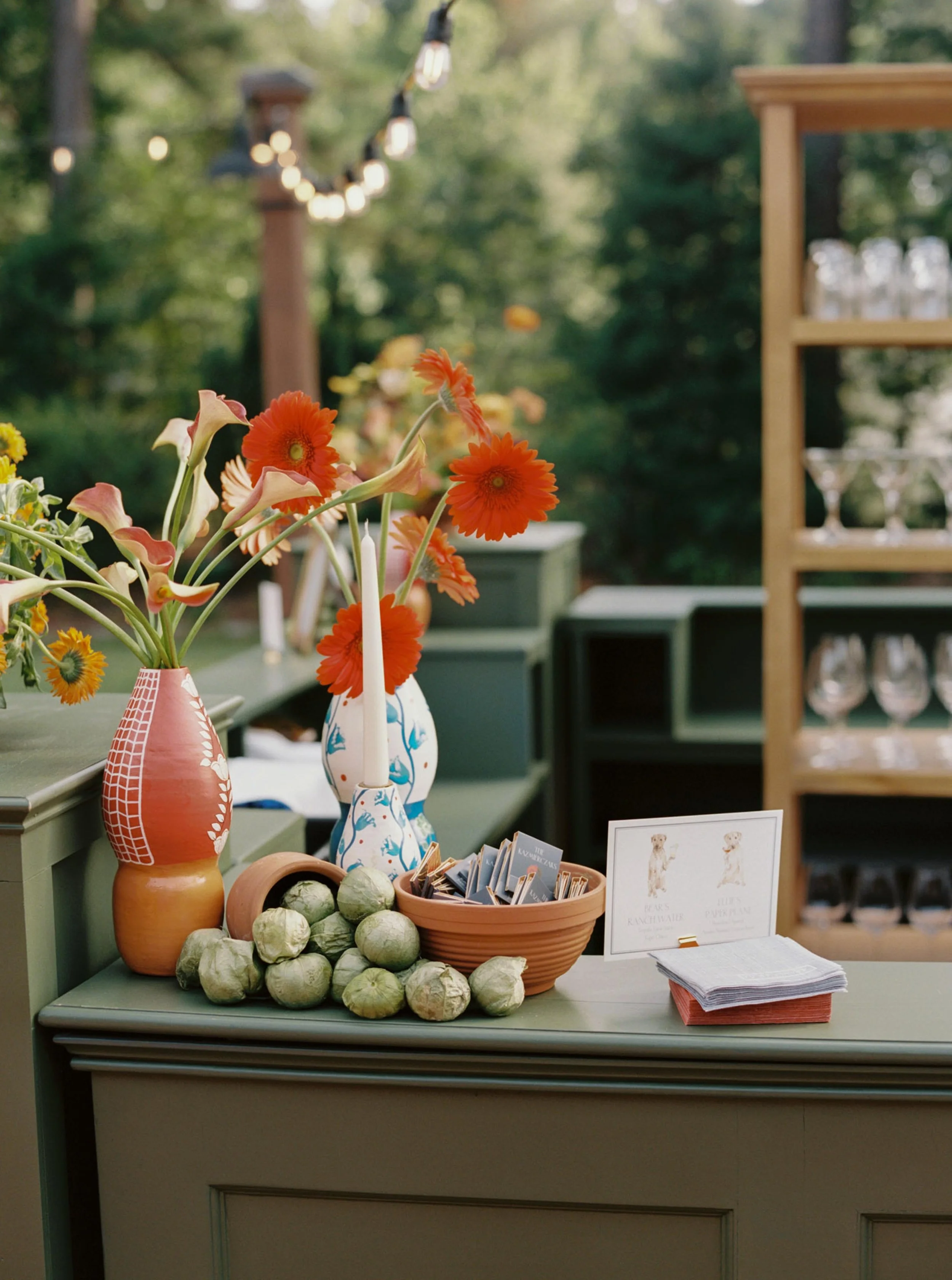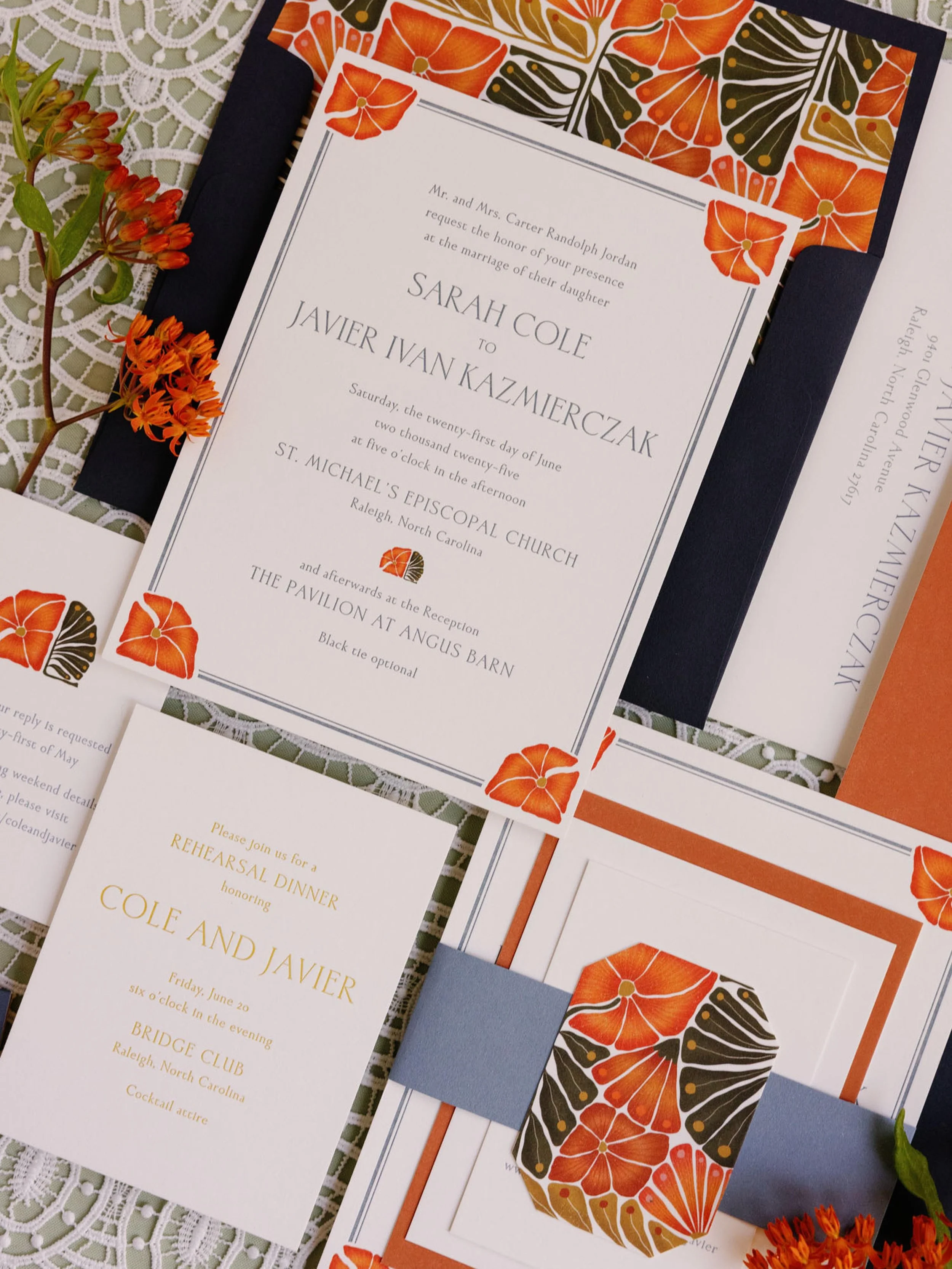 Cole and Javier’s Mexican-American fusion wedding at Angus Barn Pavilion was a vibrant celebration of culture, color, and connection. Inspired by Mexican architecture and traditions, the design drew on warm, sun-soaked tones - terracotta, marigold, and lively greens - layered together to create an atmosphere that was both bold and deeply romantic. From the florals to the textures, every detail echoed the richness of heritage while embracing the couple’s modern love story.