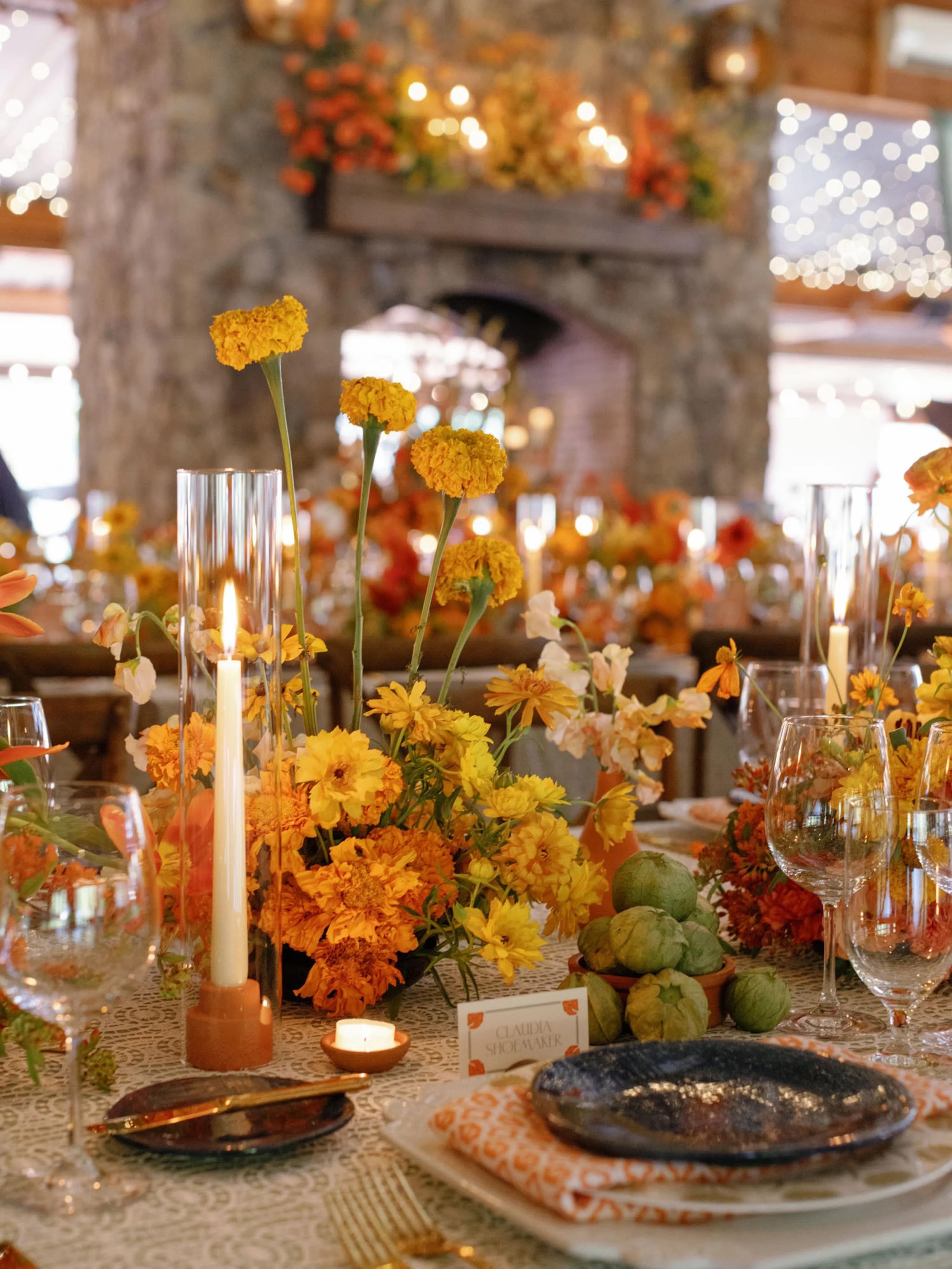From there, the wedding unfolded into a full sensory experience - lush marigolds, tablescapes in earthy shades, and an abundance of tequila poured with joy. Mexican architectural influences were woven into the setting, giving guests the feeling of stepping into a celebration that was both timeless and transportive.