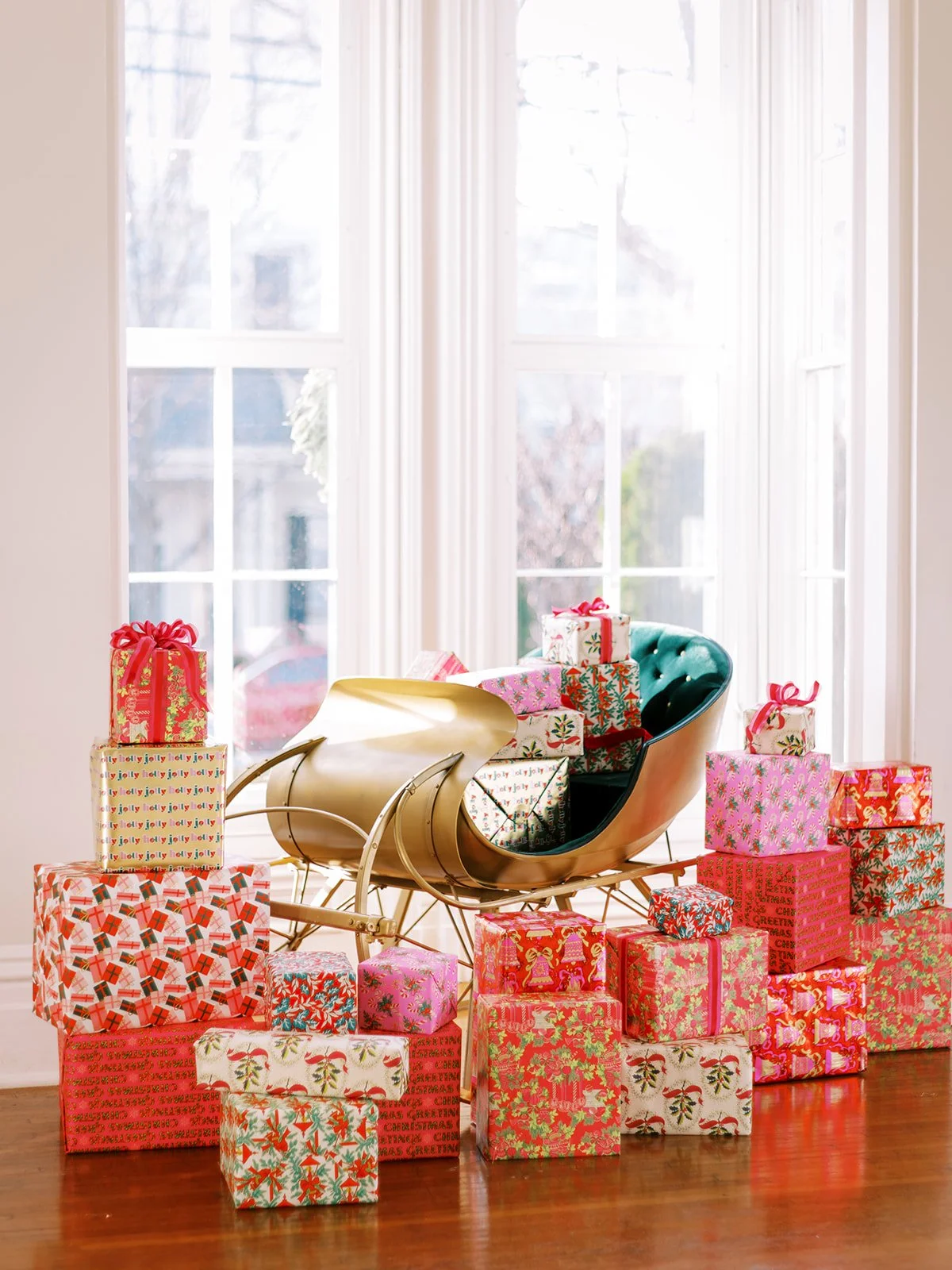The vision was a cheerful, Dorothy Draper and vintage holiday-inspired evening with vibrant colors, whimsical patterns, lots of Christmas lights, and a festive use of red and pink colorblocking.
