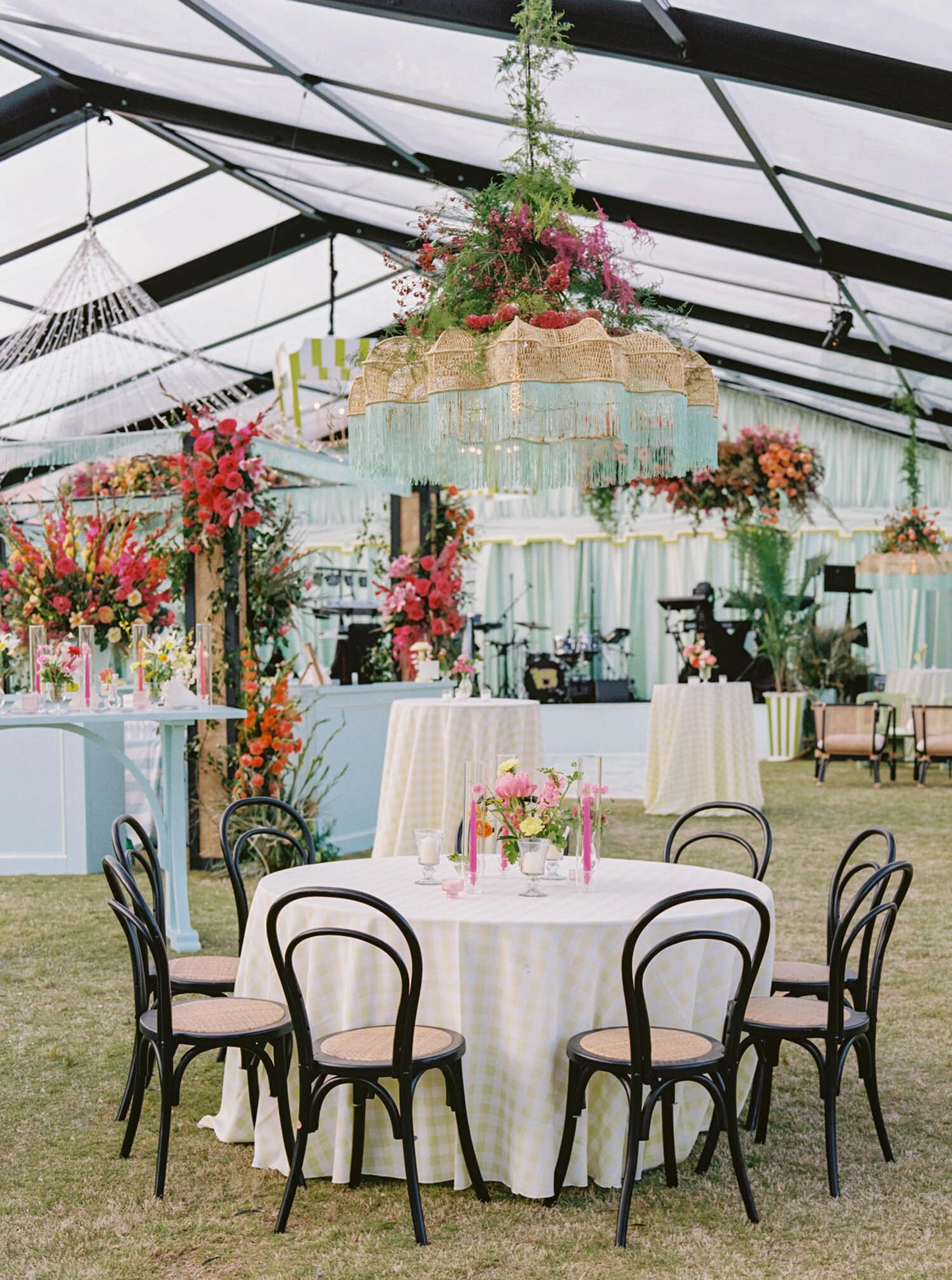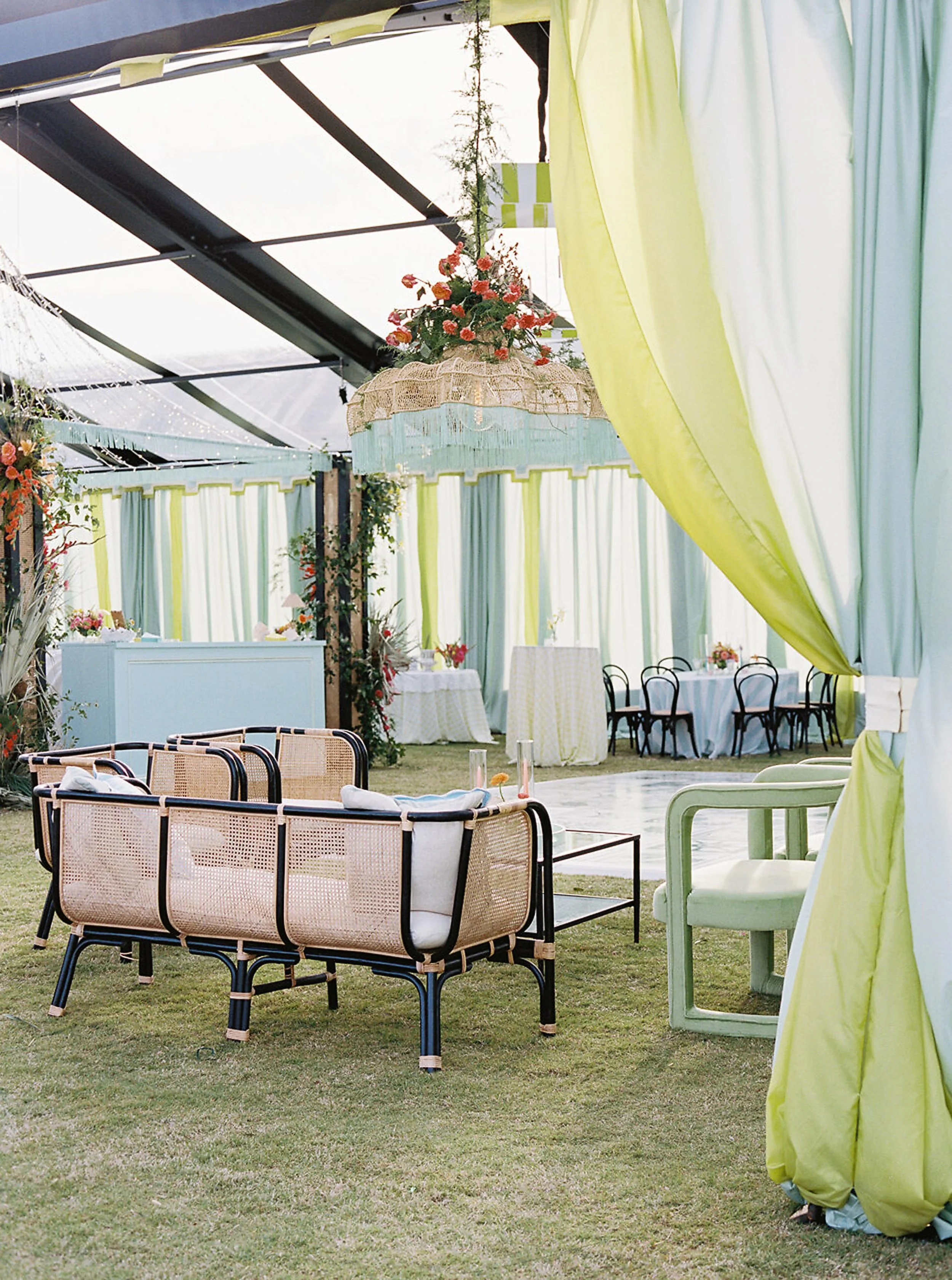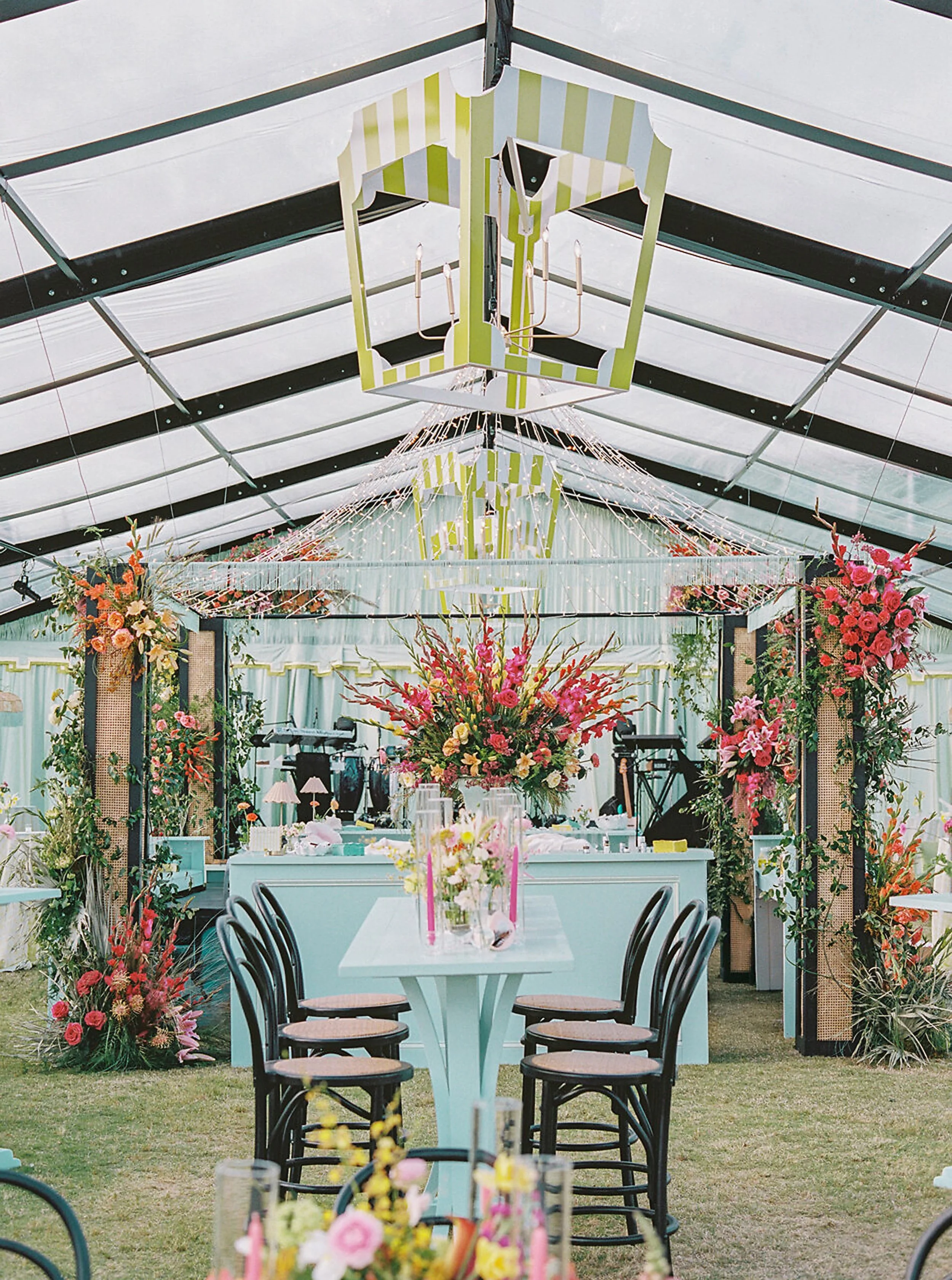 Vibrant color took center stage, with soft mint tones layered against punchy coastal accents and curated details that elevated the tented design.