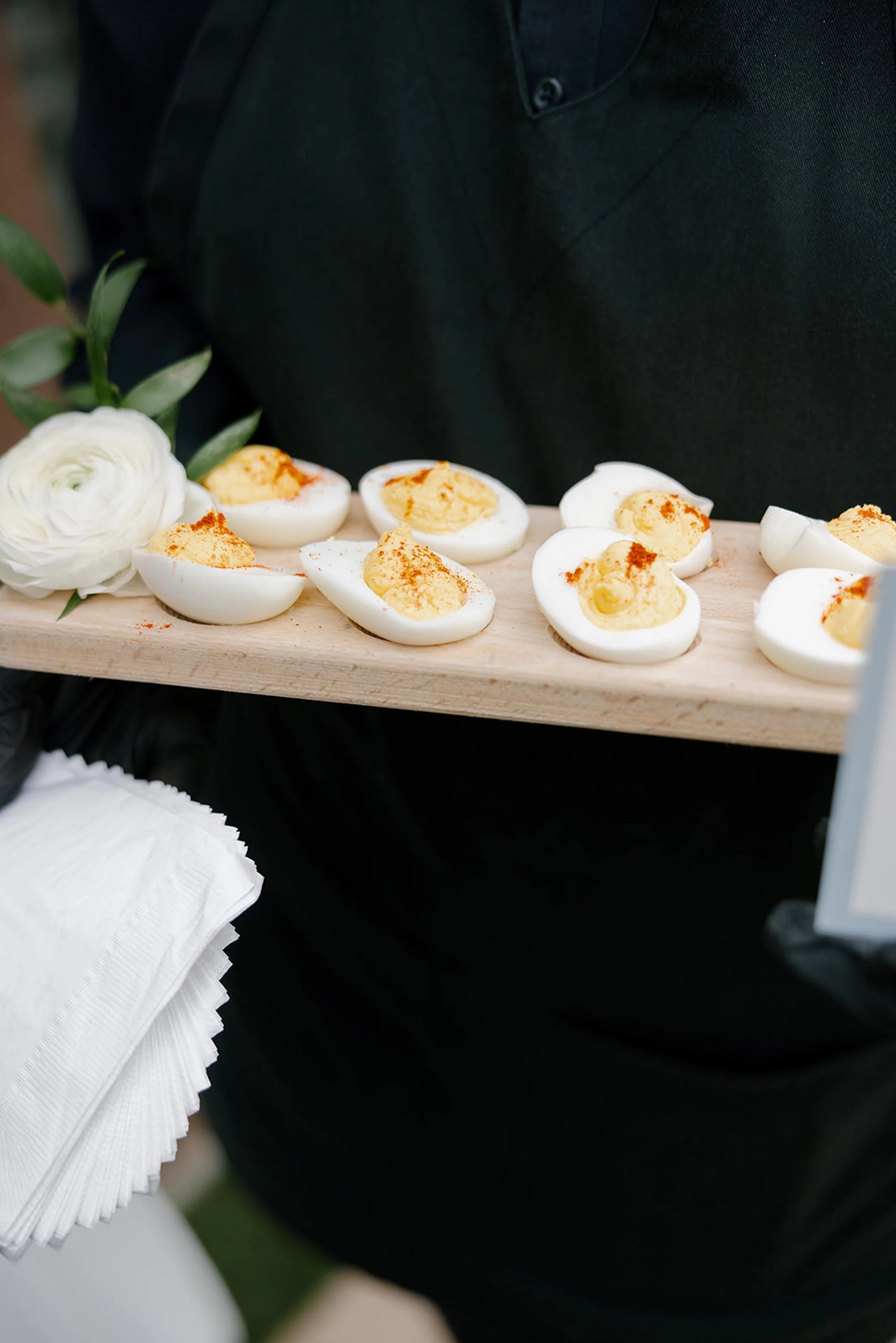 Cocktail hour featured the “Daly Dozen Deviled Eggs” made with eggs from the couple’s own chickens as a playful nod to Miranda’s maiden name.